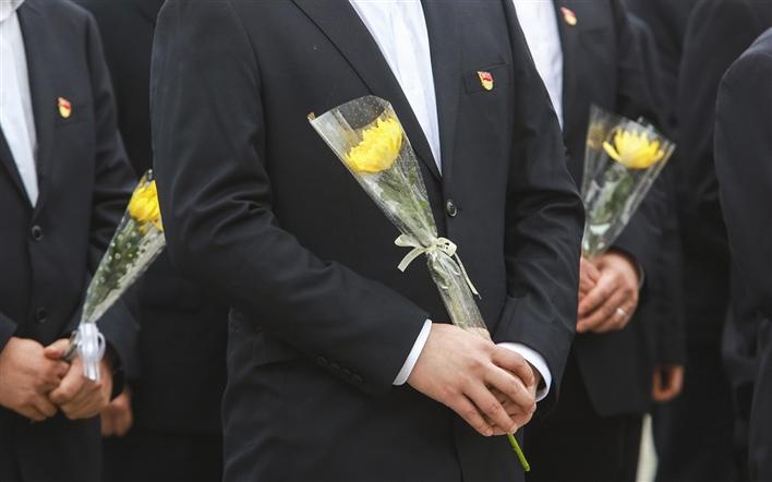 常德烈士紀(jì)念碑,黨員佩戴黨員黨徽手拿鮮花祭奠烈士。 李龍 攝