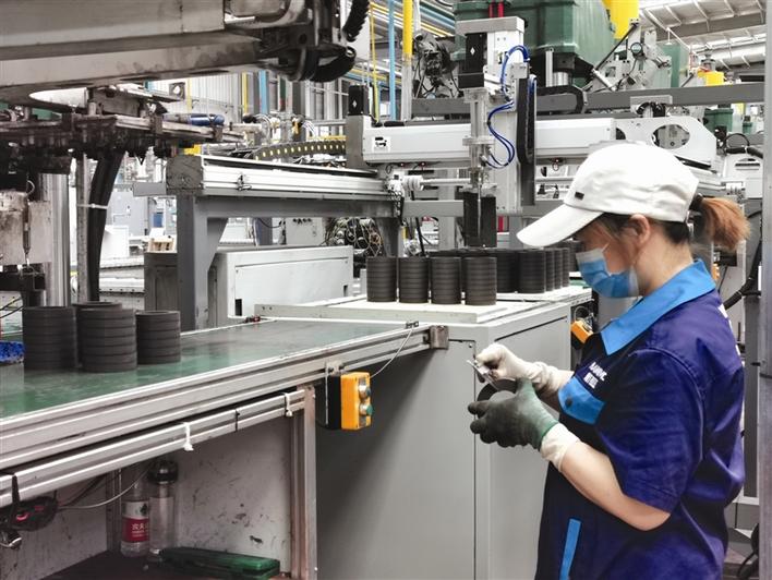湖南航天磁電三期項目于2019年落戶石門,目前已有環(huán)磁工廠等3個工廠投產(chǎn),還有3個即將投產(chǎn)、3個正在籌建。項目全部建成達(dá)產(chǎn)后,年產(chǎn)值將達(dá)20億元。圖為5月27日,環(huán)磁工廠工人正在進(jìn)行產(chǎn)品成型參數(shù)檢查。