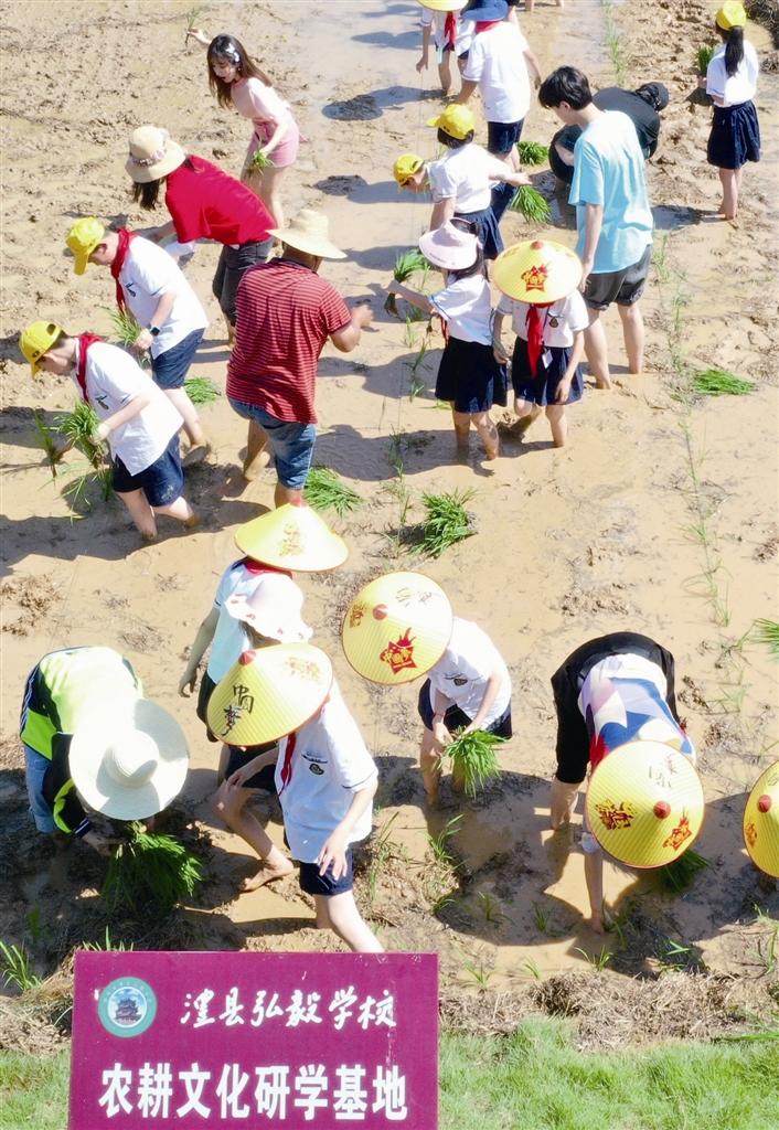 6月7日,澧縣弘毅學(xué)校的學(xué)生在城頭山國(guó)家考古遺址公園學(xué)習(xí)移栽水稻秧苗。該校是袁隆平兒時(shí)就讀的小學(xué),學(xué)校在城頭山國(guó)家考古遺址公園內(nèi)設(shè)立了農(nóng)耕文化研學(xué)基地,讓學(xué)生參與雜交稻種植,在勞動(dòng)中學(xué)會(huì)尊重農(nóng)民、珍惜糧食。 本報(bào)簽約攝影師 柏依樸 攝