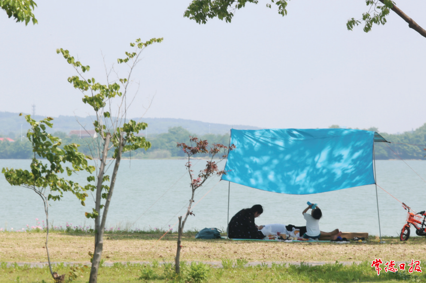 5月3日,幾位市民正悠閑地在柳葉湖畔露營,享受五一小長假。潘敬林 攝