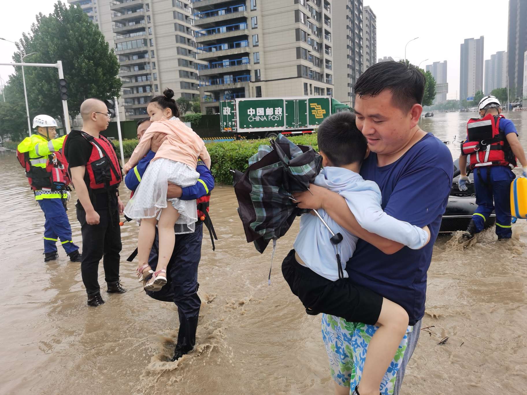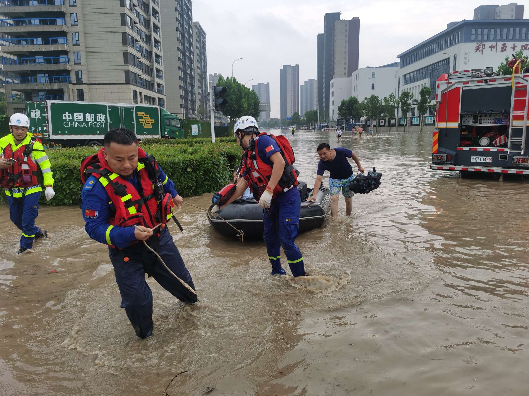 常德藍(lán)天救援隊(duì)在鄭州一小區(qū)協(xié)助轉(zhuǎn)移群眾和運(yùn)送物資