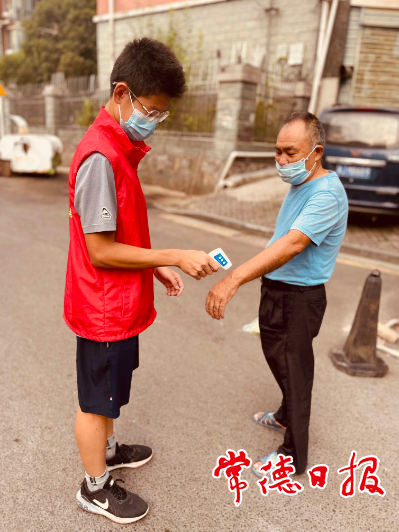 “請出示您的健康碼,謝謝!”“請戴好您的口罩,謝謝!”8月7日,臨江路社區(qū)大門口,兩位穿著“紅馬甲”的“守衛(wèi)”從早到晚駐守在那里,他們負責(zé)檢查進出小區(qū)每個人的健康碼,勸導(dǎo)他們戴好口罩。這是常德市七中老師裴玲和她的兒子熊志銘。從清晨到深夜,同樣的話語、同樣的動作,他們不知重復(fù)了多少遍。