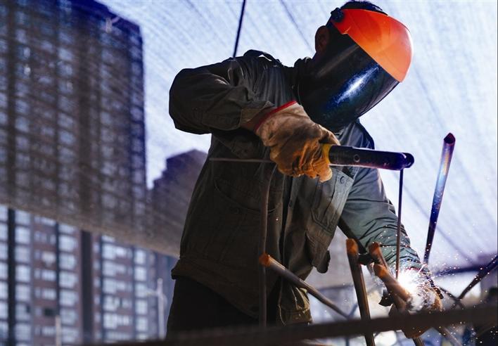 8月6日,常德高鐵樞紐站前南廣場施工現(xiàn)場,施工人員在烈日與焊機(jī)的雙重炙烤下施工。徐珊珊 攝