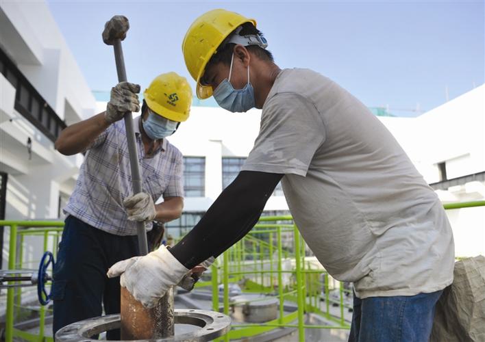 8月6日,常德市餐廚垃圾無害化處置工程項(xiàng)目工地一片繁忙,該項(xiàng)目建成后將實(shí)現(xiàn)餐廚垃圾無害化、資源化、減量化。圖為工人在安裝蒸煮攪拌爐。 陳歡 攝