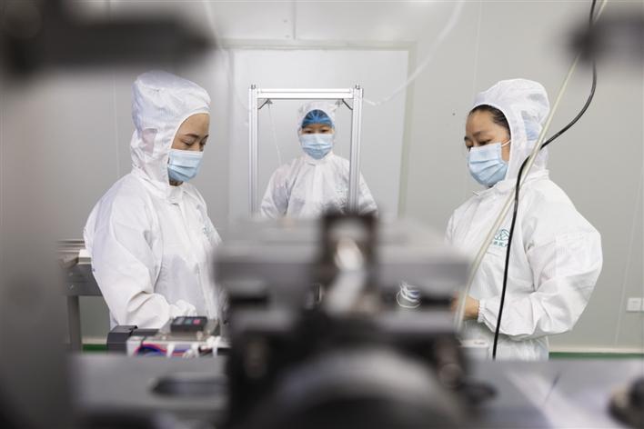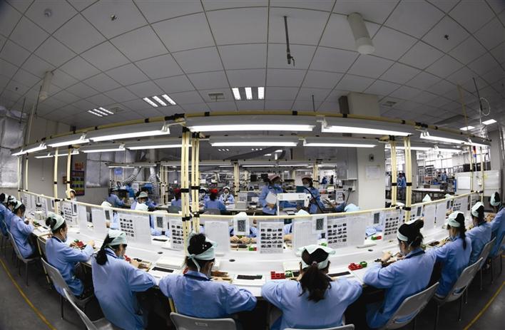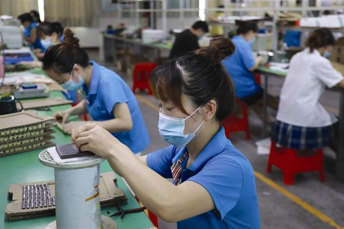 常德經(jīng)開區(qū)勝美達(dá)電子生產(chǎn)車間開足馬力忙生產(chǎn)、趕訂單,確保防疫生產(chǎn)兩不誤。羅勇 攝