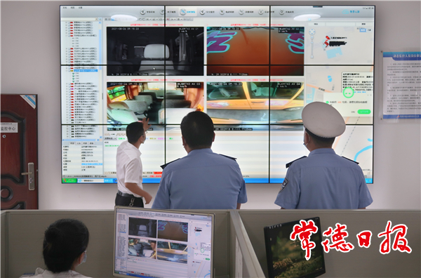 民警查看校車實(shí)時(shí)監(jiān)控完好情況