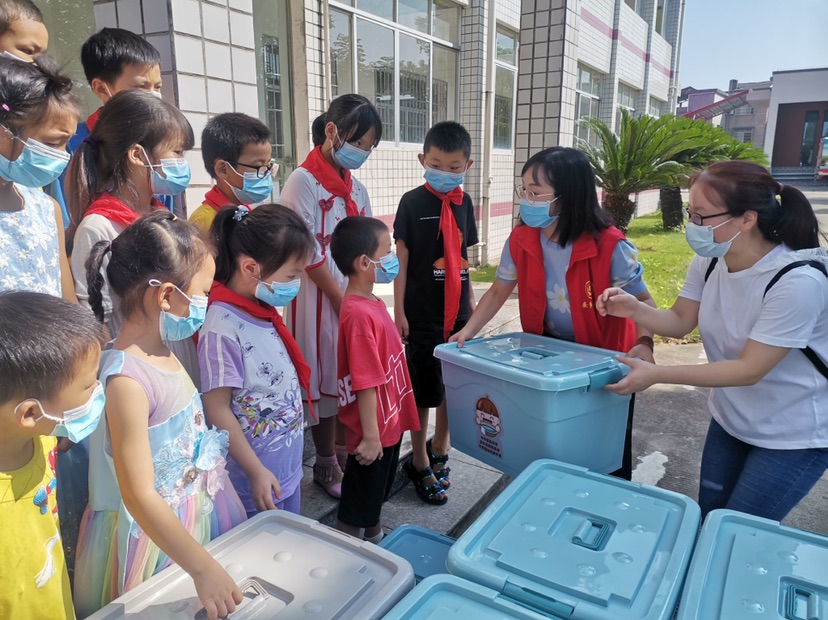 活動(dòng)現(xiàn)場(chǎng),志愿者為孩子們派送“干凈娃娃衛(wèi)生習(xí)慣養(yǎng)成包”