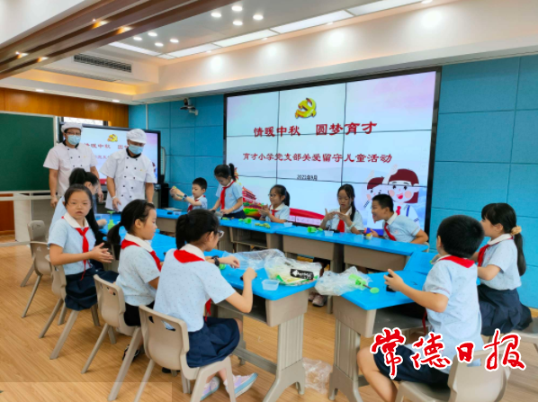 武陵區(qū)育才小學(xué),學(xué)生們正開心地制作月餅
