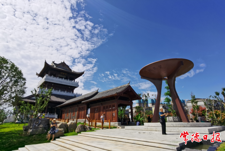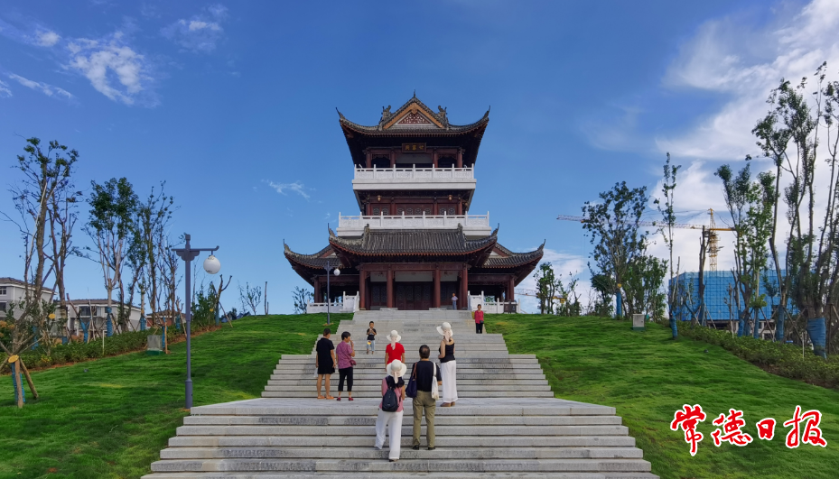 市民在新建成的甘露閣下留影