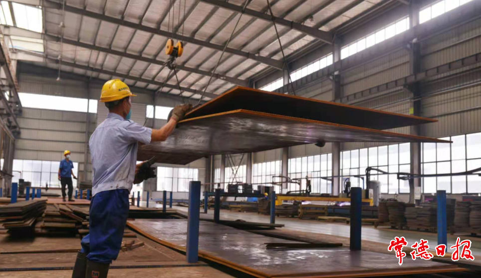 下料車間工人利用起重機(jī)吊運(yùn)原材料