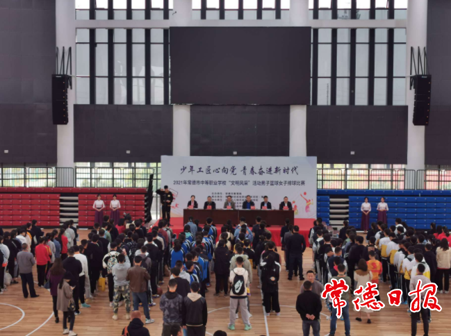 10月12日,2021年常德市中等職業(yè)學(xué)?!拔拿黠L(fēng)采”活動(dòng)男子籃球、女子排球比賽在常德財(cái)經(jīng)機(jī)電職業(yè)技術(shù)學(xué)院(籌)開(kāi)賽。來(lái)自全市22所中等職業(yè)學(xué)校的19支男子籃球隊(duì)和13支女子排球隊(duì),將在4天的比賽里展示技能,追逐夢(mèng)想。