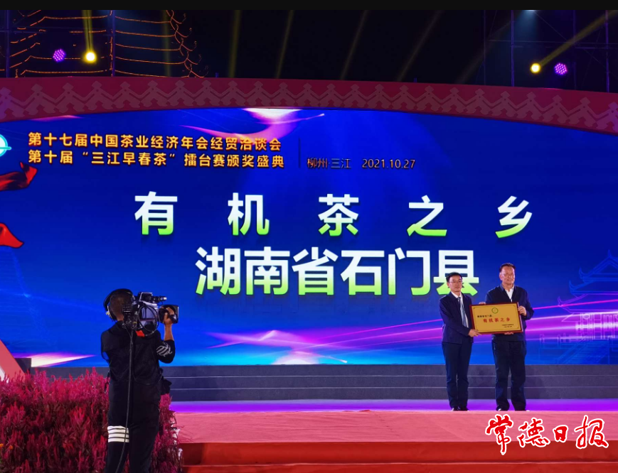 11月1日,記者從市供銷社、市茶業(yè)辦獲悉,在廣西三江剛剛落幕的第十七屆中國(guó)茶業(yè)經(jīng)濟(jì)年會(huì)上,我市石門縣和桃源縣評(píng)選為“2021年度全國(guó)茶業(yè)百?gòu)?qiáng)縣”,常德紅茶核心產(chǎn)區(qū)石門縣獲評(píng)“有機(jī)茶之鄉(xiāng)”“2021年度茶旅融合特色縣域”稱號(hào),湖南植歌茶業(yè)公司被評(píng)選為“2021年度茶業(yè)新銳企業(yè)”。