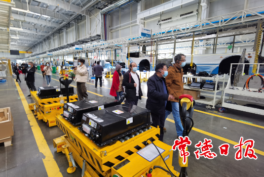 常德中車新能源汽車有限公司裝配車間熱火朝天,網(wǎng)絡(luò)名人將鏡頭對準(zhǔn)忙碌的工人