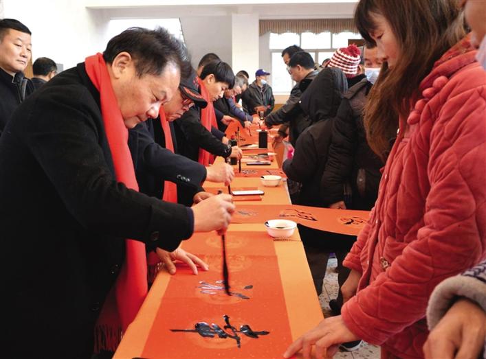 1月8日,湖南省硬筆書法家協(xié)會、常德市硬筆書法家協(xié)會組織26名書法家來到賀家山原種場,開展“聽黨話·感黨恩·謀振興”書法家寫春聯(lián)送“?!被顒?,圖為活動現(xiàn)場。