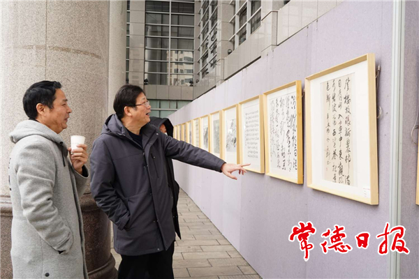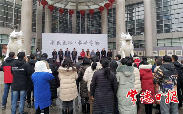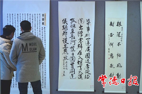12月27日上午,“墨興王化 書香常德 ”主題作品展在常德市紫菱圖書館開展,近百名本土?xí)嫾壹皭酆谜呙把┯^展,用翰墨書香熱度助推鄉(xiāng)村振興提速升溫。