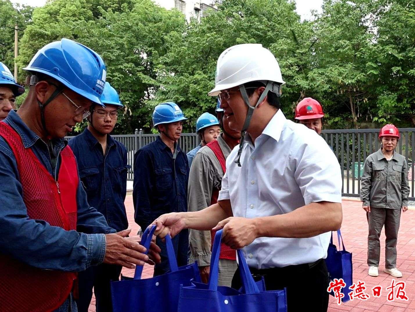 譚丁在國(guó)網(wǎng)常德供電公司朝陽(yáng)變電站新建工程施工現(xiàn)場(chǎng)為一線施工人員防暑降溫物品