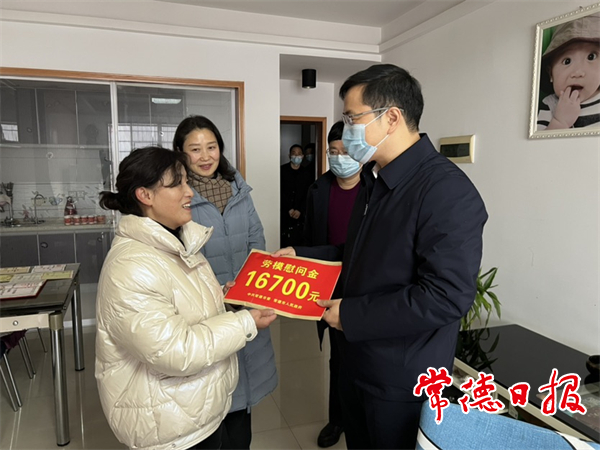 在武陵區(qū),徐永健來到萬福達環(huán)保節(jié)能建材公司慰問專家金靚,與她親切交流,了解企業(yè)生產(chǎn)經(jīng)營狀況,傾聽企業(yè)發(fā)展需求,鼓勵企業(yè)在新的一年奮力拼搏,再創(chuàng)佳績,做大做強。在永安街道楠沙社區(qū)烈士家屬伍明科家中,徐永健對烈士家庭為國家和人民作出的貢獻表示敬意,叮囑隨行人員一定要關(guān)心關(guān)注烈士遺屬的日常生活,落實好各項優(yōu)撫政策,及時上門做好服務(wù)。在企業(yè)離休干部楊丕君、岳定于家中,徐永健叮囑老人保重身體,祝福他們生活更加安心舒心。