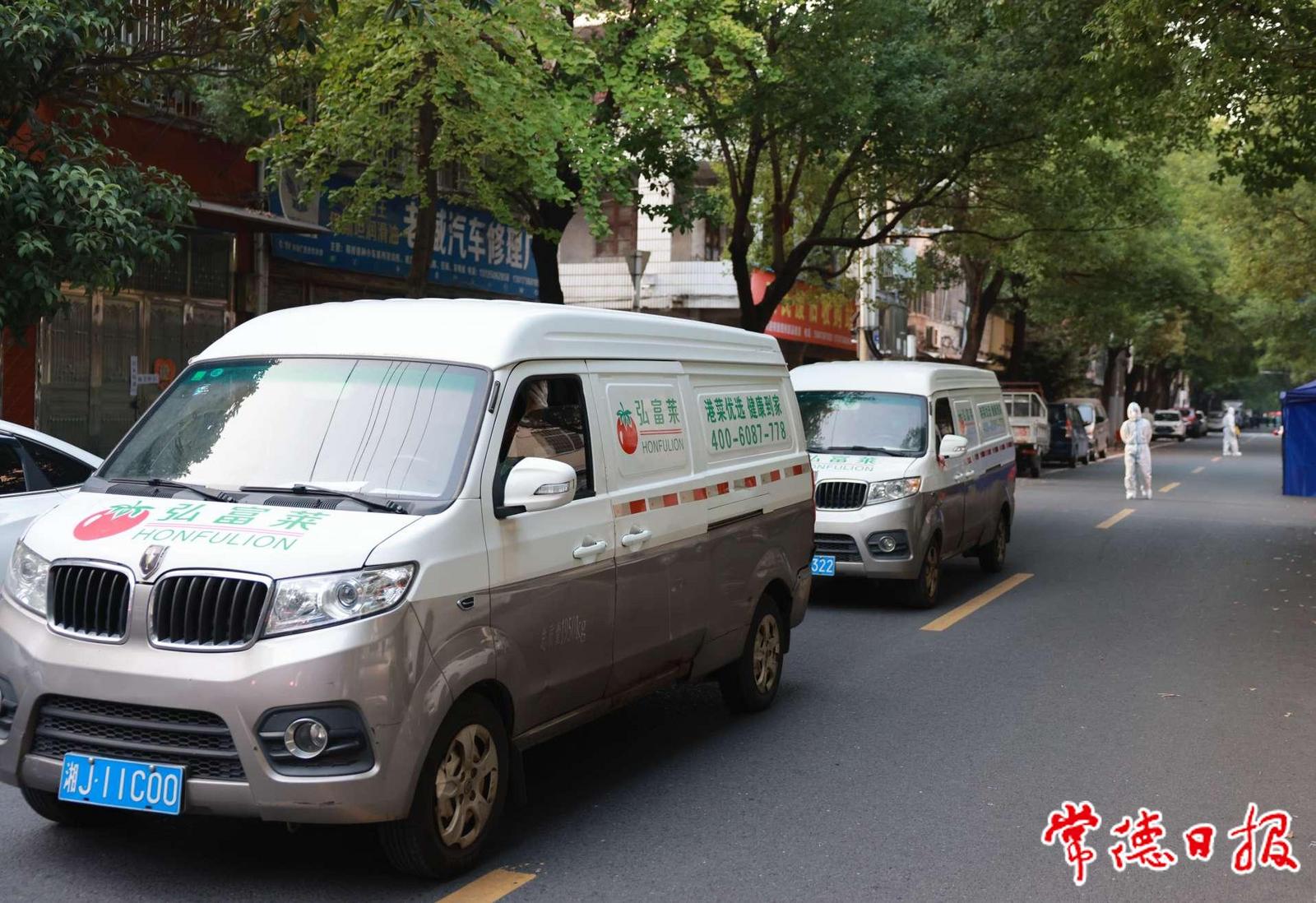 保供人員和志愿者為高風(fēng)險區(qū)的群眾配送蔬菜包、糧油包,保障當(dāng)?shù)鼐用裆钚枨?/p>