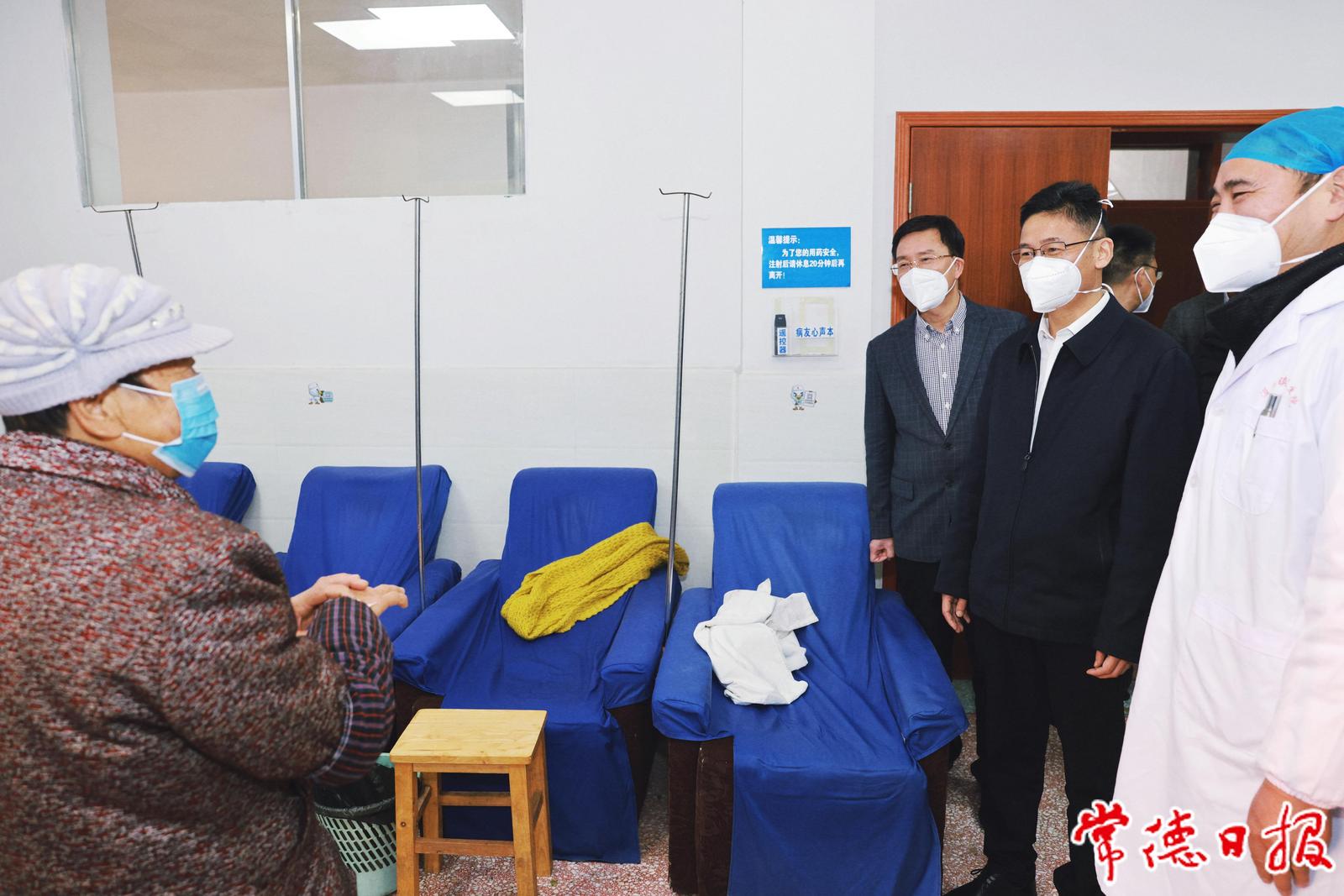 曹志強先后到市第一人民醫(yī)院、湖南九芝堂零售連鎖有限公司常德宏大藥店、穿紫河街道社區(qū)衛(wèi)生服務(wù)中心、第四人民醫(yī)院(北區(qū))、市社會福利院、鼎城區(qū)灌溪鎮(zhèn)衛(wèi)生院開展調(diào)研督導。在城鄉(xiāng)各級醫(yī)療衛(wèi)生機構(gòu),曹志強深入門診、住院區(qū)、重癥監(jiān)護區(qū)了解新冠病毒感染患者的醫(yī)療救治工作、縣域醫(yī)共體建設(shè)情況、農(nóng)村和社區(qū)醫(yī)療健康服務(wù)管理工作,向堅守在防疫一線的醫(yī)護人員表達慰問和感謝,并叮囑住院患者要注意補充營養(yǎng),積極配合治療,爭取早日康復。在湖南九芝堂零售連鎖有限公司常德宏大藥店,曹志強詳細詢問了退燒、止咳等藥品和各類口罩的供應能力和售價水平。在市社會福利院,曹志強對該院的疫情防控措施和服務(wù)對象感染救治、隔離管理情況進行了檢查。