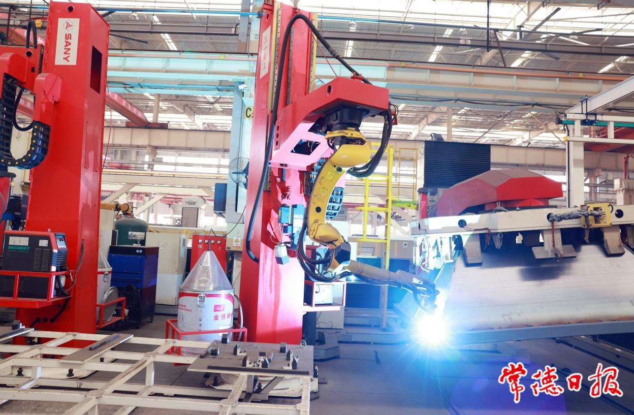 常德市三一機(jī)械有限公司車間內(nèi)焊接機(jī)器人正在生產(chǎn)
