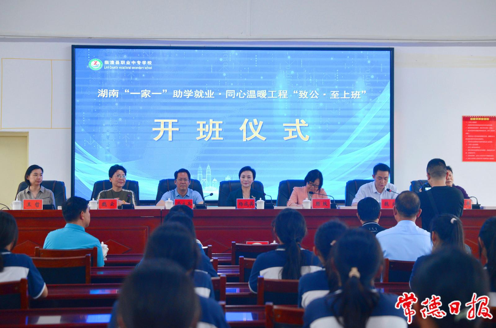 日前,湖南“一家一”助學就業(yè)·同心溫暖工程“致公·至上班”開班儀式在臨澧縣職業(yè)中專學校舉行。副市長、致公黨常德市委會主委楊成英,湖南中華職業(yè)教育社秘書長馮立兵出席開班儀式,并為該班授牌。