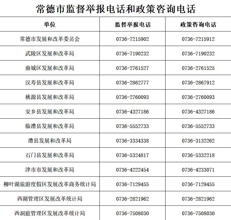 常德市監(jiān)督舉報(bào)電話和政策咨詢電話